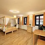 Az Český Krumlov városi hotel 9 szobát kínál, amelyekben széf, íróasztal és síkképernyős műholdas TV állnak a vendégek rendelkezésére. Fa bútorok, beleértve íróasztal biztosított.